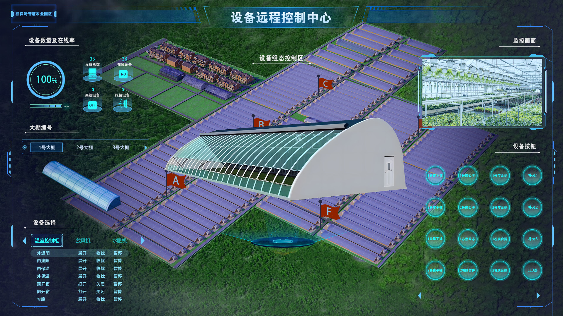 通過天地圖、虛擬園區、智能大棚等園區管理控制板塊,可以直觀立體的展示園區分布、大棚數量、種植面積以及物聯網設備在線等情況,并可以具體查看某個大棚的編號、建棚日期等基本信息以及棚內農作物的實時生長情況。