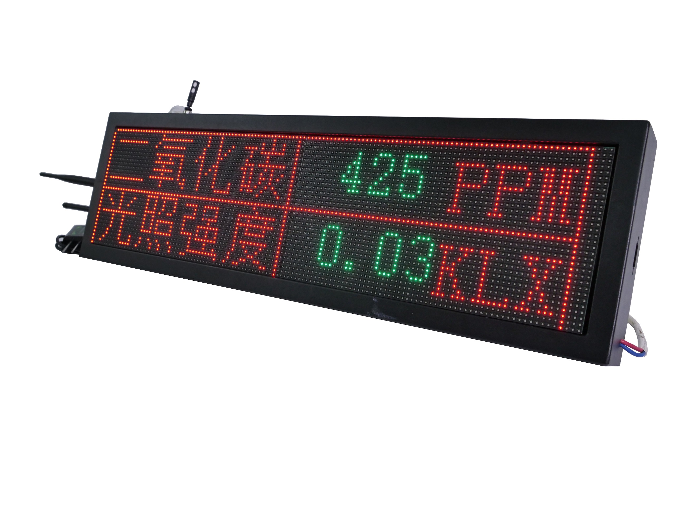 LED環境六要素采集器外觀為P4.75LED雙色顯示屏設計,顯示屏可外接多個傳感器,可實時采集溫室大棚內的空氣溫度、空氣濕度、光照、二氧化碳濃度、土壤溫度、土壤濕度等環境數據,并同步上傳至棚保姆物聯網平臺,可通過LED環境六要素采集器自帶的LED雙色顯示屏及棚保姆物聯網平臺手機APP實時查看監測數據。